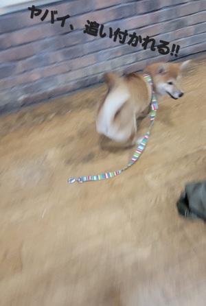 リード着けたら、固まり、怖がってる…???