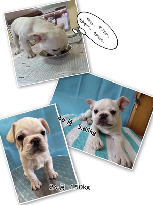 2ヶ月で1.75kgだった体重も4ヶ月では5.85kg。1.50kgだった体重も5.65kgになりました?