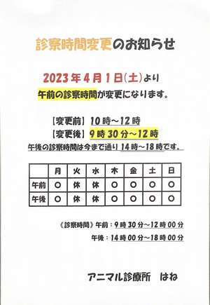 2023年4月1日より診察時間が変更になります